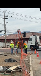 En la intersección de Camino Tuniche con la Ruta H10-210 se está instalando un nuevo semáforo. Además, se están construyendo veredas y aceras para mejorar la seguridad de peatones, ciclistas y vehículos