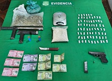 En el procedimiento también se incautó pasta base de cocaína y marihuana, una pesa digital, dinero en efectivo y una cortapluma.