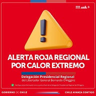 La Dirección Regional de SENAPRED O’Higgins, en base a la información técnica proporcionada por la Dirección Meteorológica de Chile (DMC), ha declarado Alerta Roja Regional debido a un evento de temperaturas extremas